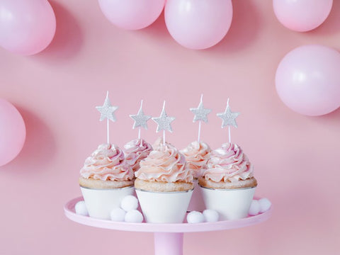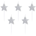 Aporta un toque elegante y brillante a tus tartas con estas velas de cumpleaños con forma de estrella en color plateado, perfectas para celebraciones especiales, cumpleaños y eventos con un estilo moderno y sofisticado.
